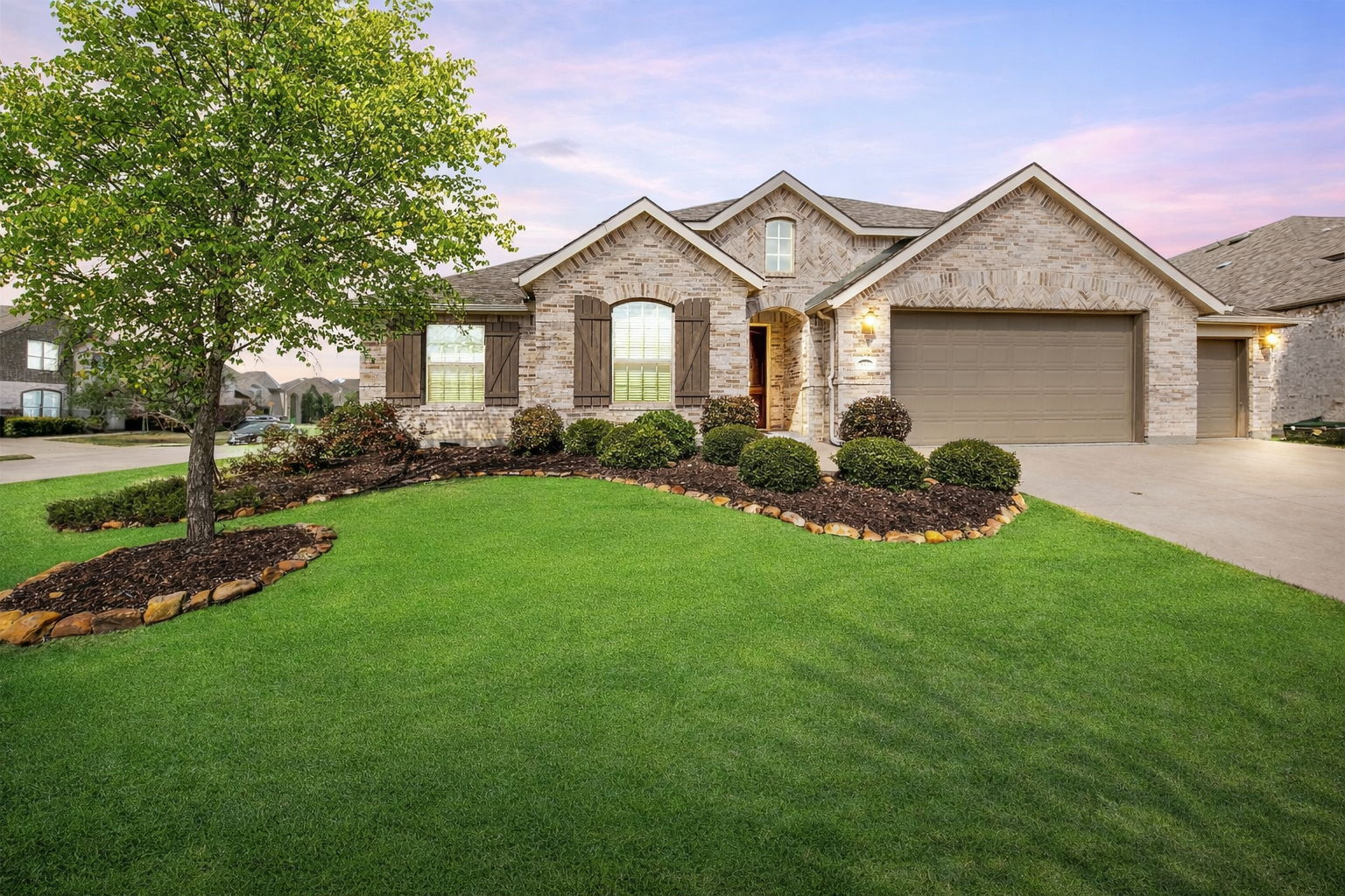 Welcome to this stunning single-story home in the highly sought-after Light Farms community in Celina, located within award-winning Prosper ISD. Situated on a desirable corner lot, this beautifully designed home offers 4 bedrooms, 3 full bathrooms, and 1 half bathroom, along with a private office, making it perfect for both comfortable living and working from home. Inside, you’ll find a spacious media room, an elegant formal dining room, and a thoughtfully designed layout that includes a secondary bedroom with a private en suite bathroom, ideal for guests or multigenerational living. The chef’s dream kitchen features premium finishes, generous counter space, and a layout perfect for gathering with family and friends. The open-concept design flows seamlessly into the living area and extends to a covered patio, creating the perfect space to relax or entertain year-round. Light Farms is known for its incredible lifestyle and resort-style amenities. Residents enjoy five resort-style pools, more than 240 acres of parks and green space, playgrounds, picnic areas, and over 13 miles of scenic walking and biking trails. The community also features Constellation Park, complete with dog parks, a dog launch, and an 11-acre lake, along with a fitness center and professional-level sports courts for tennis, pickleball, basketball, bocce ball, and sand volleyball. Light Farms also includes front yard landscaping maintenance, making it easy to enjoy a beautiful yard without the upkeep. An on-site restaurant just minutes from your front door makes it easy to enjoy everything this vibrant neighborhood has to offer.
